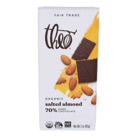 Theo Chocolate, Organic Dark Chocolate Bar Salted Almond, 3 Oz(Case Of 12)