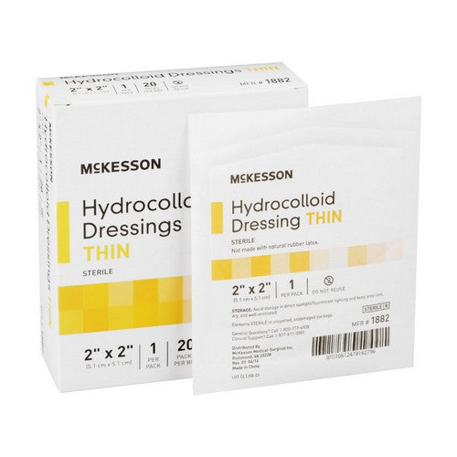 McKesson, Hydrocolloid Dressing Waterproof Film Backing 2 X 2 Inch Square Film 1886, Box Of 20